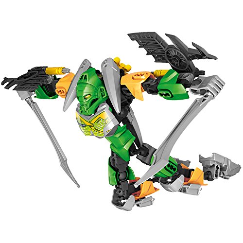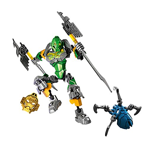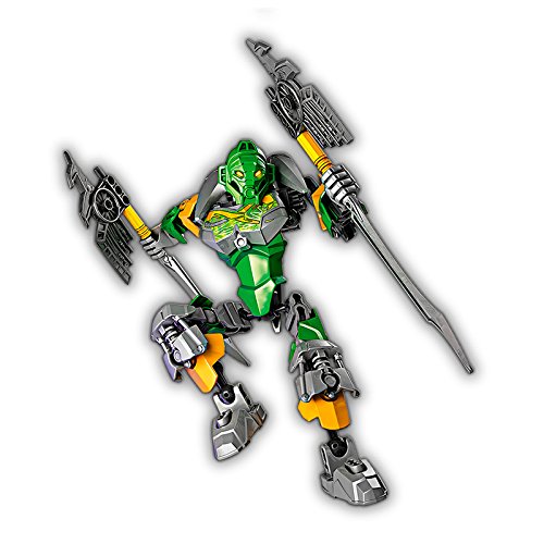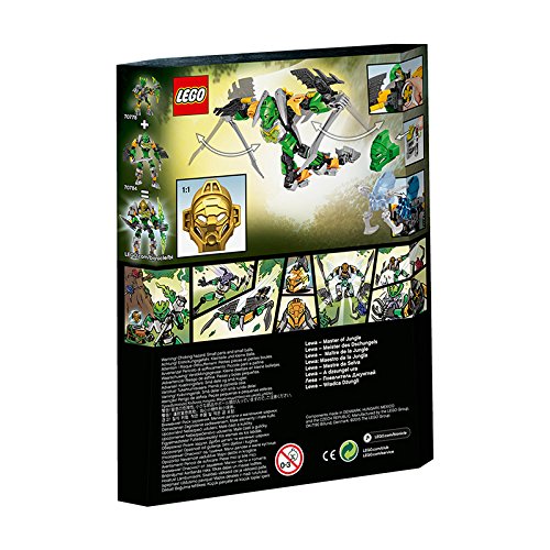 Grab the Golden Jungle Mask with LEGO BIONICLE Lewa – Master of Jungle with convertible X-glider/battle axes and battle arm function.