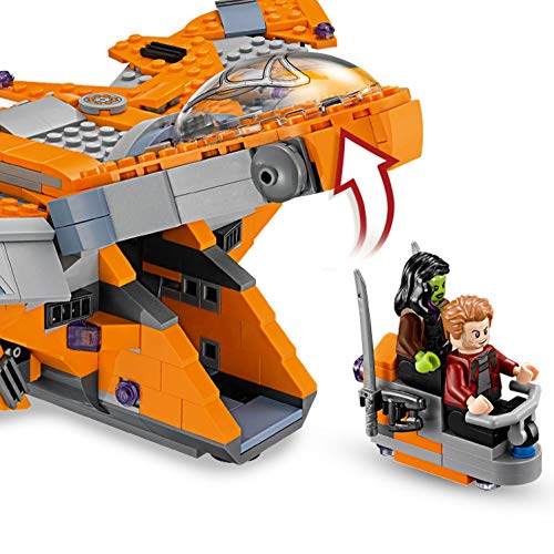 - Build The Guardians’ Ship toy, featuring an opening cockpit for the space scooter, opening rear compartment, storage room for the Infinity Gauntlet, two stud shooters and adjustable wings