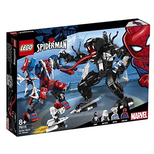 - Match the posable Spider Mech,featuring an opening minifigure cockpit, tech spider/web shooter and grippingclaw, against the huge posable Venom Mech, with minifigure-grabbing claws