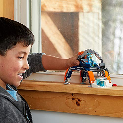 Walk across hard terrain with the Arctic Ice Crawler, featuring an articulated arm and posable legs, plus an ice block with removable section, a minifigure and a rodent figure.