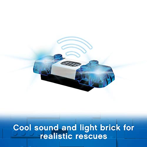 Grab your firefighter gear it’s time to save the day! The LEGO® City construction workers have accidentally knocked over a lamppost and started a fire at downtown work site. Turn on the lights and siren on the fire ladder truck and race to the scene. Hey, better grab that porta-loo with the crane and move it out of the way. Whoa! Oops, sorry about that! Use the trusty fire axe to chop through the boards so R.O.S.-T3 the ROV can battle the flames. Extend the ladder and use the water pump to fight the fire on the roof of the burning building. Can you put out the fire before it gets out of control? It’s another exciting day on the LEGO City Fire crew!
