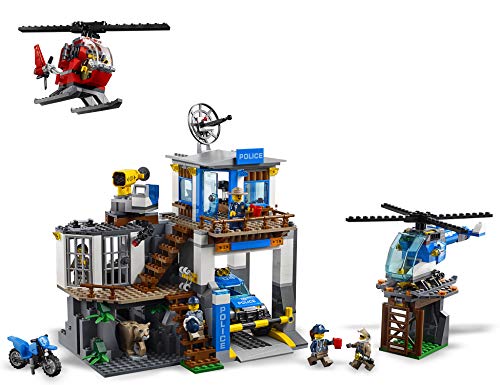LEGO 60174 City Mountain Police Mountain Police Headquarters Station with Net Shooter, Garage, 2 Helicopters, 4×4 Car and Motorbike Toys plus Animal Figure, Adventure Sets for Kids
