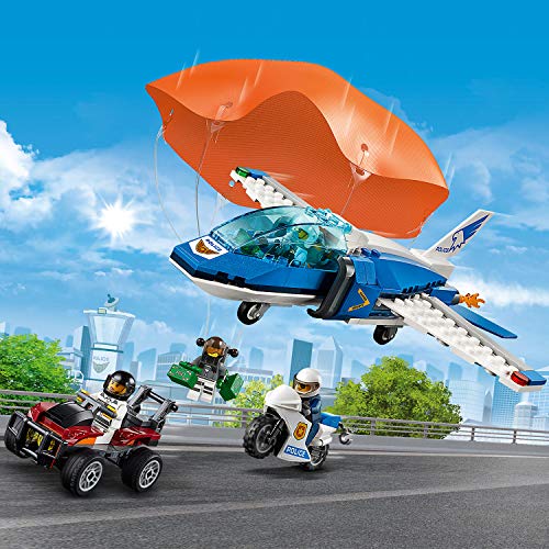 LEGO 60208 City Police Sky Police Parachute Arrest with 3 Vehicles: Aeroplane, Car and Motorbike Toys, Crook’s Chase Sets for Kids