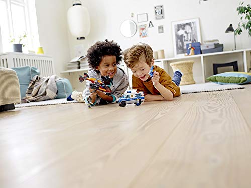 Grab your gear and join the LEGO® City Sky Police force! Climb in the cab of the police transporter armoured vehicle and start driving the precious diamond through the city. Hey, what was that noise? Someone’s on the roof and is trying to steal the cargo! Swoop in with the winged jetpack and stop the crooks from getting away in their helicopter! Can you get there before they fly away with the loot?