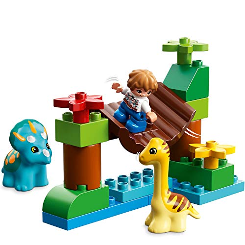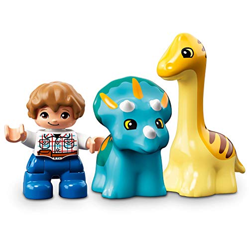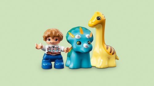 - Includes a Gray Mitchell LEGO DUPLO figure, plus 2 baby dinosaurs: A Triceratops and a Diplodocus