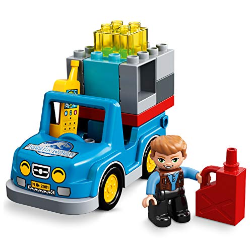 - Features an Owen Grady LEGO DUPLO figure, plus a T. rex figure with opening jaw, a car and a revolving Jurassic World lookout tower