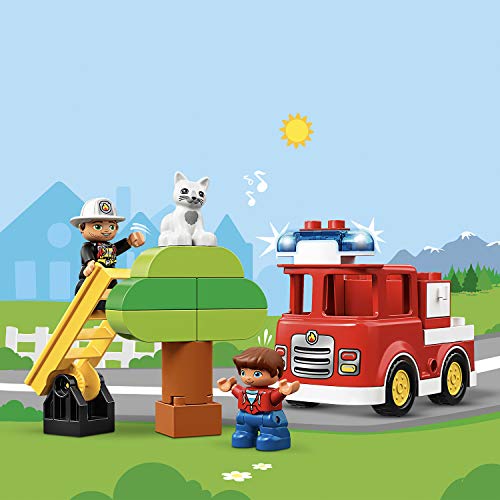 LEGO 10901 DUPLO Town Fire Truck with Light and Sound and Firefighter Figure, Toy for Kids Age 2-5