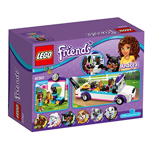 Drive the Puppy Parade limo, with its cute doggy features and space inside for all of the LEGO® Friends puppies you’ve collected. Arrive at the podium to award Apollo with the golden puppy trophy, and catch it all on the TV camera with Andrea presenting on the microphone. Includes a mini-doll figure plus a dog figure.
