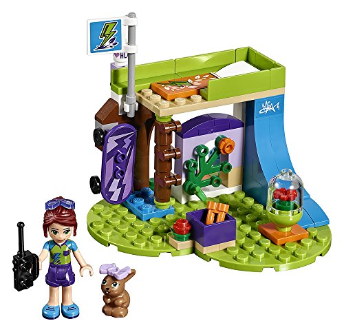 This LEGO® Friends Mia’s Bedroom building toy is set on a green heart-shaped base and perfectly reflects Mia’s outdoorsy spirit. She has a tree house-style bed with steps, a little house for her pet bunny underneath, a skateboard and ramp to practice new tricks, plus more sporting equipment, bunny treats and a walkie-talkie to keep in touch with her friends. Includes a mini-doll figure and a bunny figure.