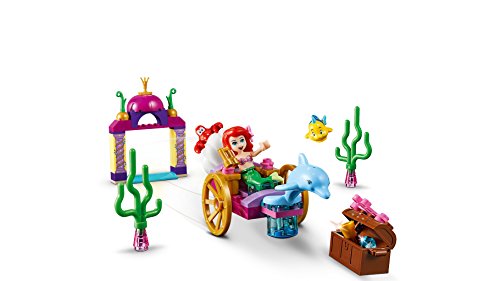 Includes a Disney Princess Ariel mini-doll figure, plus Flounder, Sebastian and dolphin figures; Features a carriage with starter brick element and a seat for Ariel to sit on; This fun set also includes an archway with crown decoration, stage with a microphone and seaweed elements, an opening…