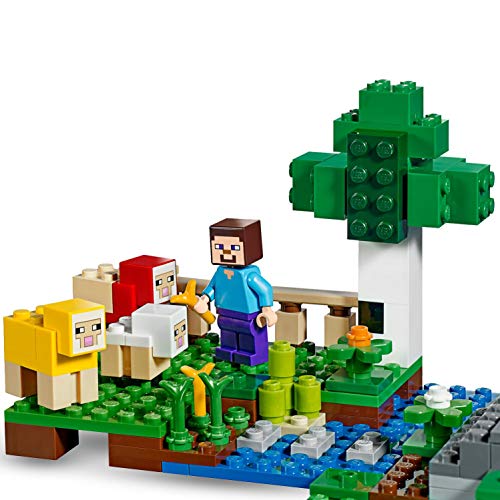 - Includes Steve minifigure, 2 dyed sheep and a baby sheep, plus coloured bricks for building 1 of 3 fun structures to decorate the farm