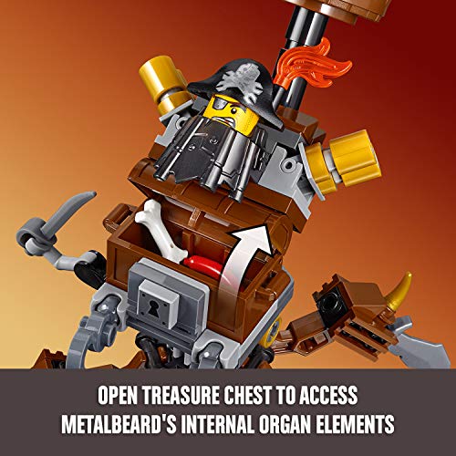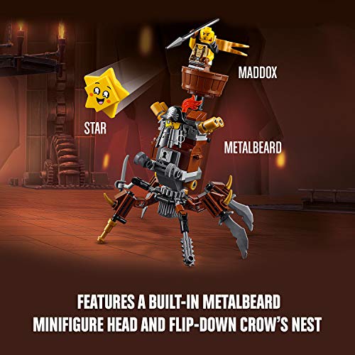 - Build the poseable MetalBeard mech, with a built-in LEGO MetalBeard minifigure head, opening treasure chest and flip-down crow’s nest and Batman’s throne and battle against Star Batman throne features a minifigure seat and an adjustable ‘You’re Welcome’ sign
