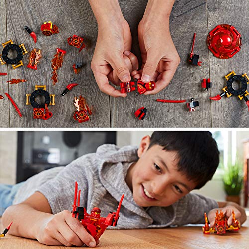- Build Kai’s Spinjitzu Tornado of Fire spinner with 3 different attachments for attack, defense and speed modes, then create your own games and challenge your friends in fun LEGO Spinjitzu competitions