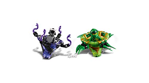 - Build Lloyd’s Spinjitzu Tornado of Energy spinner and Lord Garmadon’s Spinjitzu Tornado of Destruction spinner, each with 3 different attachments for attack, defense and speed modes, then stage a spinner fight
