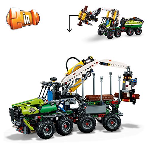 LEGO 42080 Technic Forest Machine Truck, 2 in 1 Tractor with Log Trailer, Power Functions Motor and Pneumatic System, Advanced Construction Toy