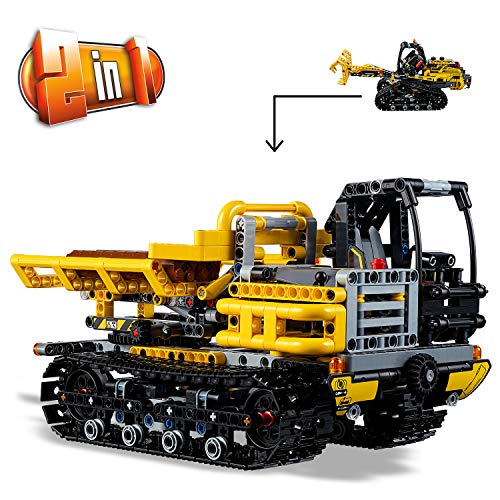 Create the ultimate multi-functional construction vehicle – the LEGO® Technic Tracked Loader. This amazing model comes with a classic yellow and black colour scheme with sticker detailing and an awesome combination of manual functions. Rotate the cab through 360°, lift and lower the boom and operate the claw to grab and move the included tree trunk elements. This 2-in-1 model also features a working 2-speed winch, rugged ground-gripping tracks and a detailed cab with rear-hinged opening doors. When you’re ready for another building challenge, rebuild it into a rugged Tracked Dumper.