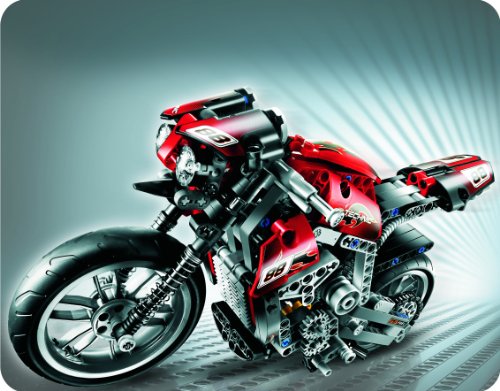 High Octane Two-Wheeled Action!Rev up for some high-speed racing with the LEGO® Technic Motorbike! This machine is built to race with a working drive chain powers it’s moving, 3 cylinder engine. Just like the real thing, with front and rear suspension systems, a kick stand and all-new racing…